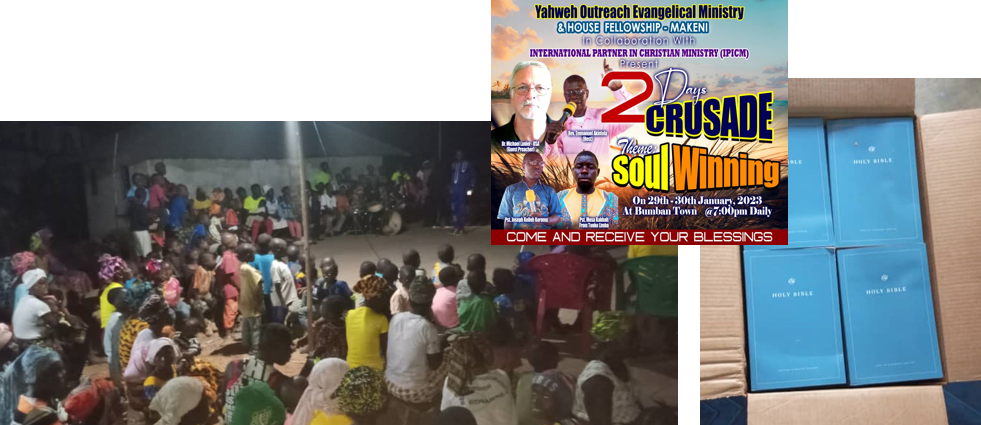 As of May 2023, IPICM has successfully planted 5 new churches in Sierra Leone. Four churches resulted from holding community-wide crusades in the months of January through April. The sixth church came together in the latter half of 2022 in a community where there was neither a local church, nor had a crusade been conducted.