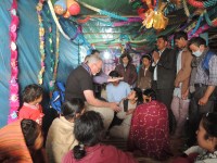 The evening service was marked with unquestionable power. Harrison brought the message to an assembly of 180 souls, with 10 praying to receive Christ Jesus. Afterward, Peter prophesied that there were people present with medical needs, which he was careful to specify. In all, 6 individuals—1 responding to each specific prophetic utterance—came forward; healing was spoken over each one; and all 6 received their healing. Then Dr. Michael addressed the crowd, speaking healing, to those seeking physical restoration. Approximately 100 persons received healing, demonstrating as much by doing what they couldn’t do just moments prior. Those that didn’t receive healing were again prayed for by the rest of the team with about 35 more healed by the close of the meeting. Some of the healings include a short foot that was lengthened; 2 individuals with side, arm, or leg paralysis were healed; a woman using “witches clay” renounced the practice and was healed; lungs were cleared; many backs, neck, shoulders, ears, knees and more, were healed.